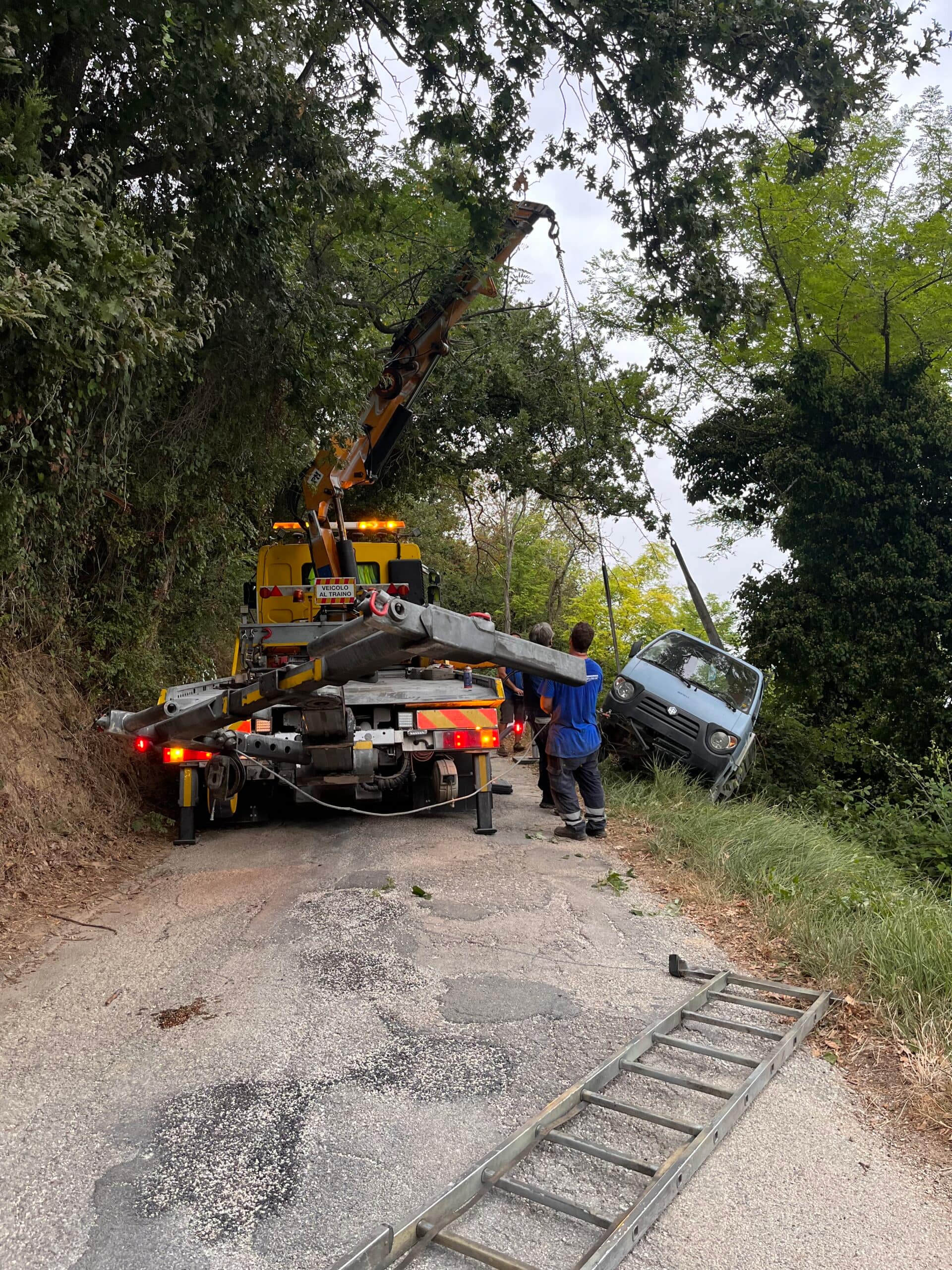 La forca idraulica telescopica posteriore da 50 ton consente il traino con asse sollevato di autovetture in avaria.